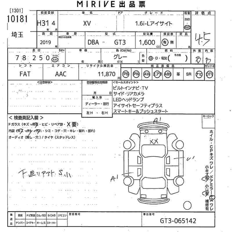 SUBARU XV 1.6I-L EYESIGHT - лот 10181