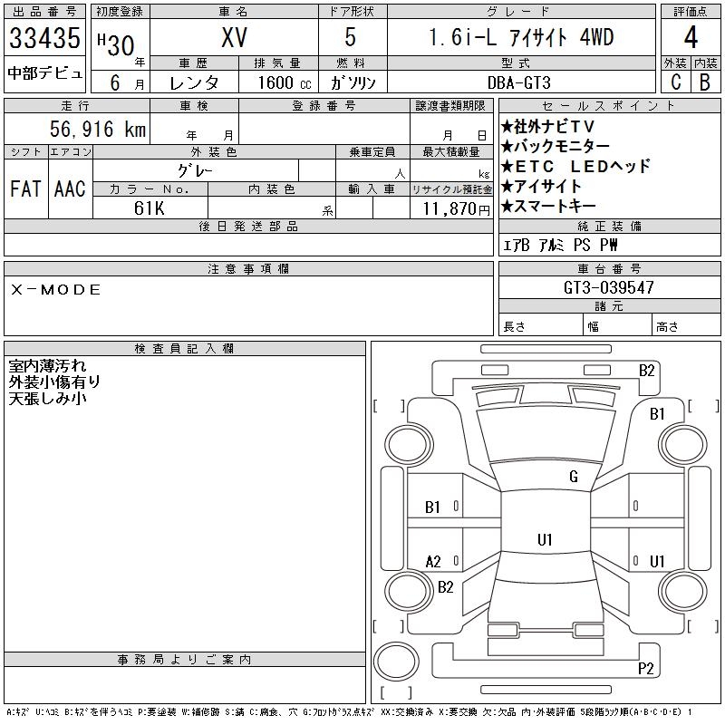 SUBARU XV 1.6I-L EYESIGHT 4WD - лот 33435