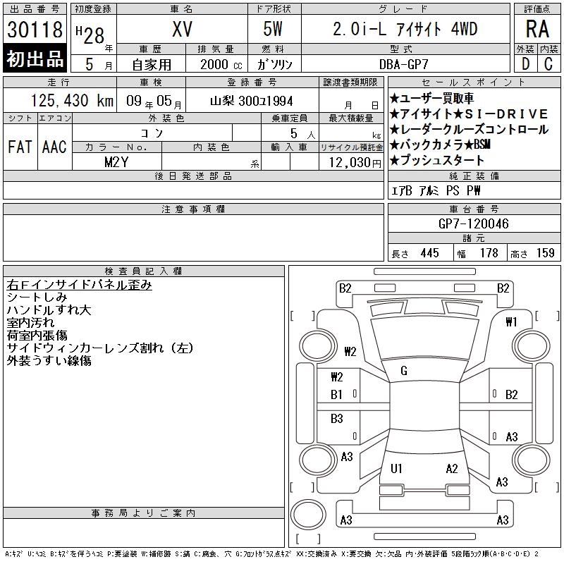 SUBARU XV 2.0I-L EYESIGHT 4WD - лот 30118