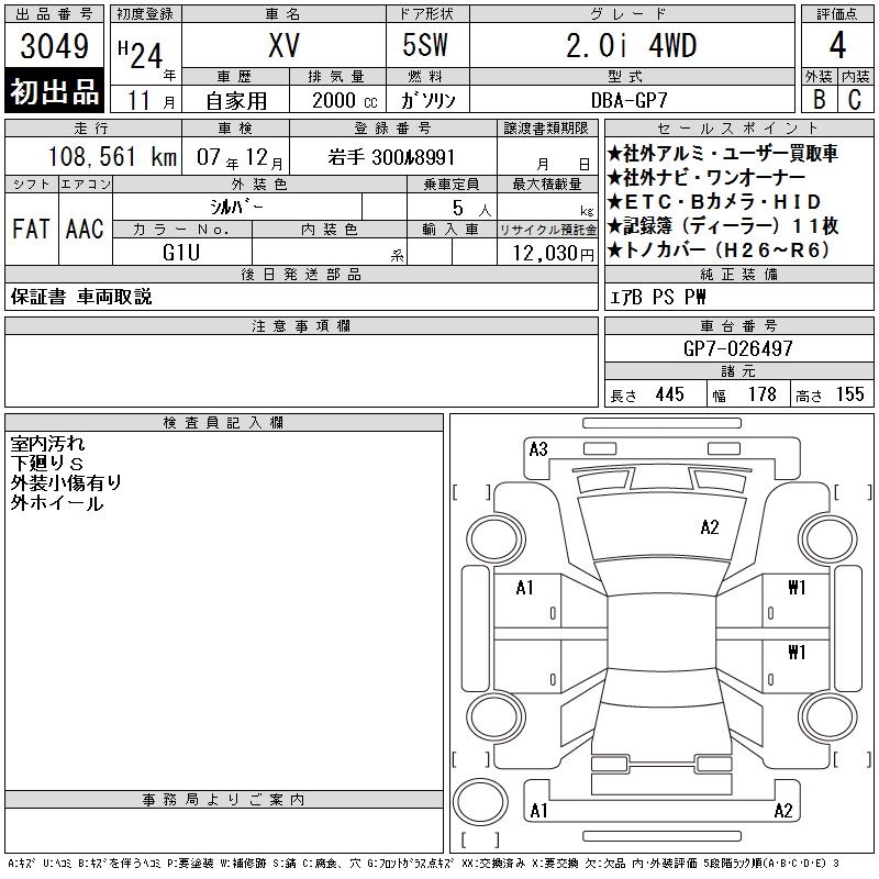 SUBARU XV 2.0i 4WD - лот 3049
