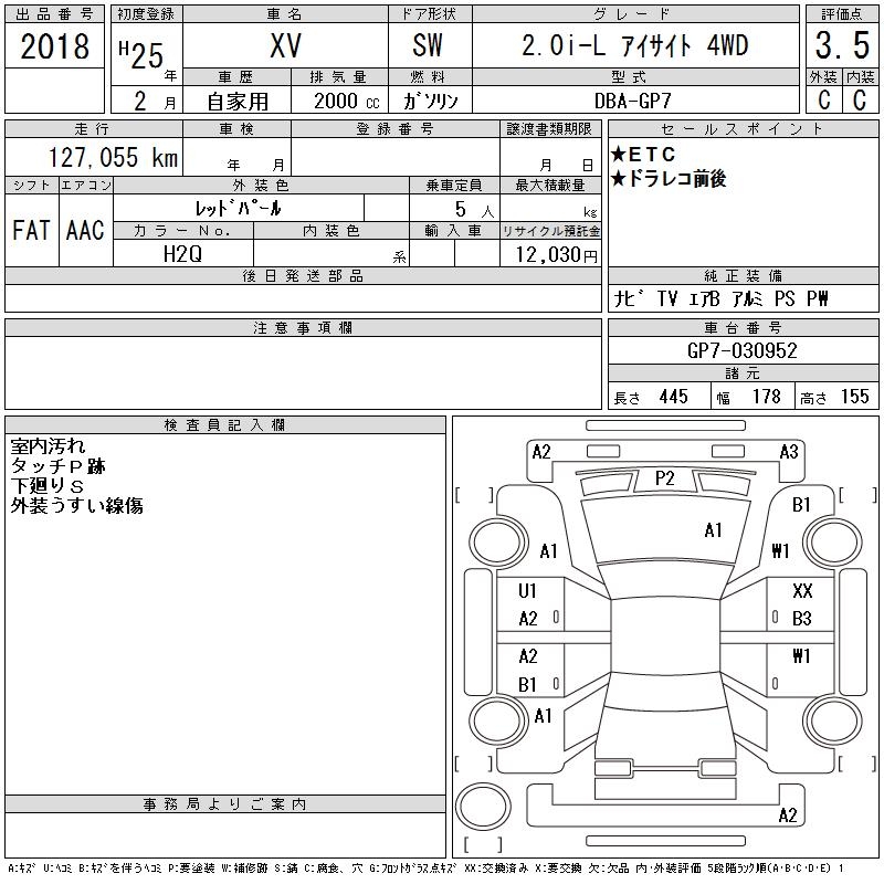 SUBARU XV 2.0I-L EYESIGHT 4WD - лот 2018