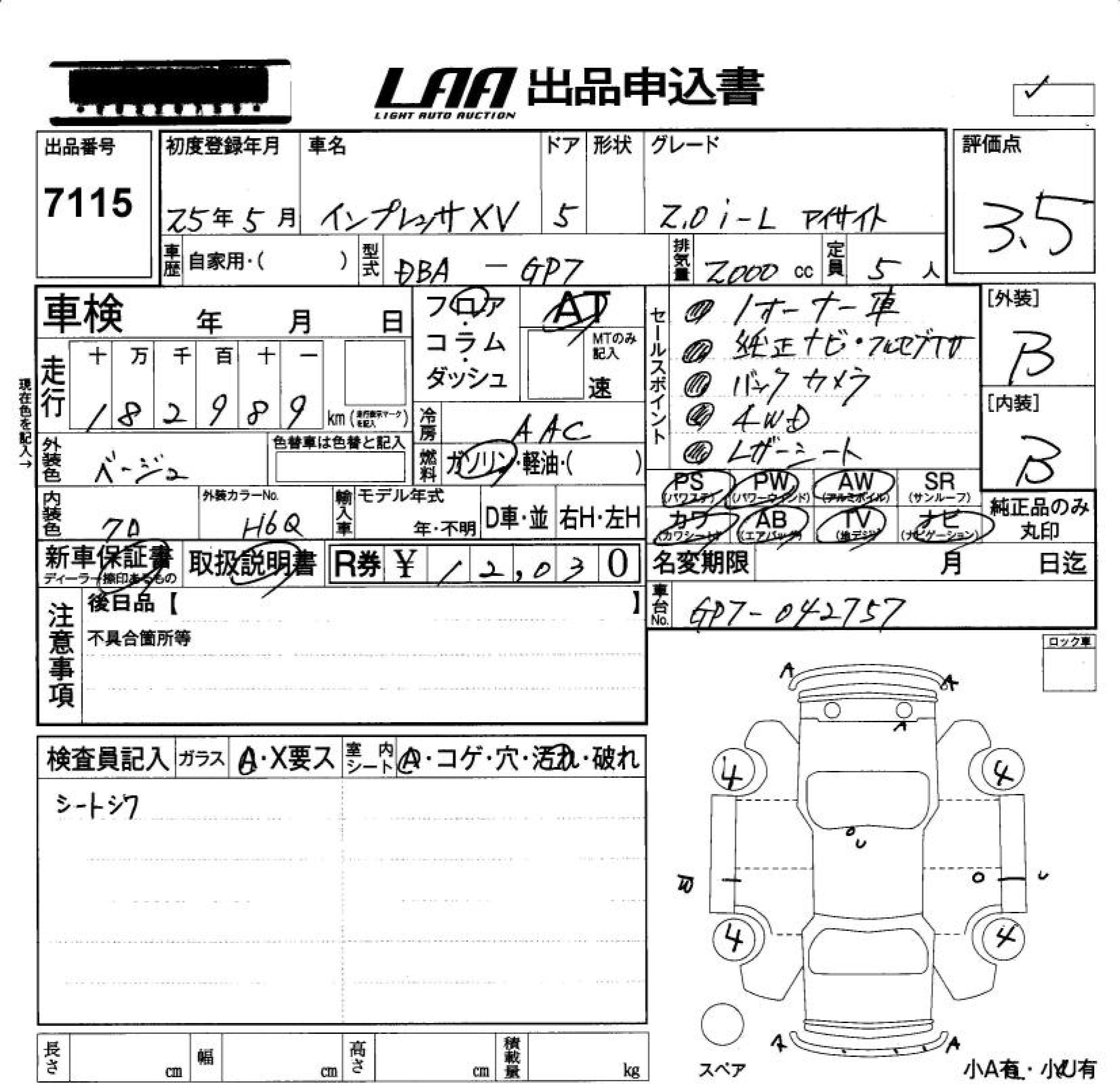 SUBARU XV 2.0I-L EYESIGHT - лот 7115