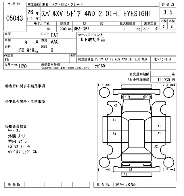 SUBARU XV 2.0I-L EYESIGHT - лот 5043