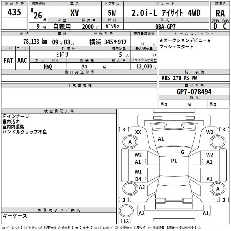 SUBARU XV 2.0I-L EYESIGHT 4WD - лот 435