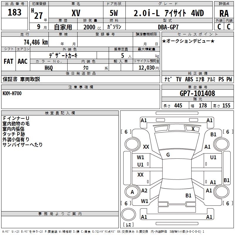 Все аукционы SUBARU XV