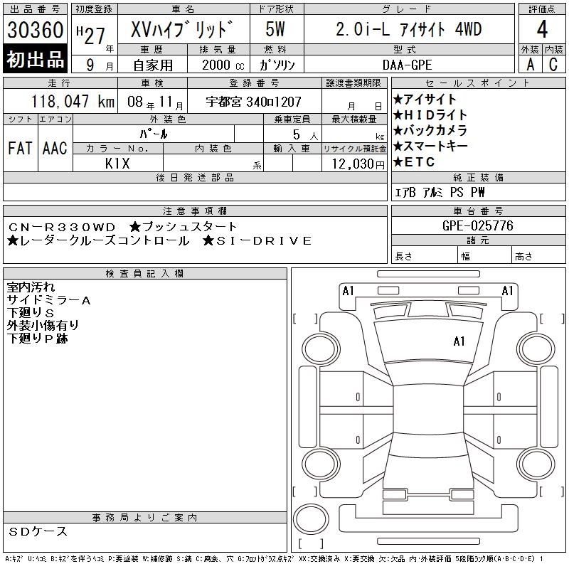 SUBARU XV 2.0I-L EYESIGHT 4WD - лот 30360