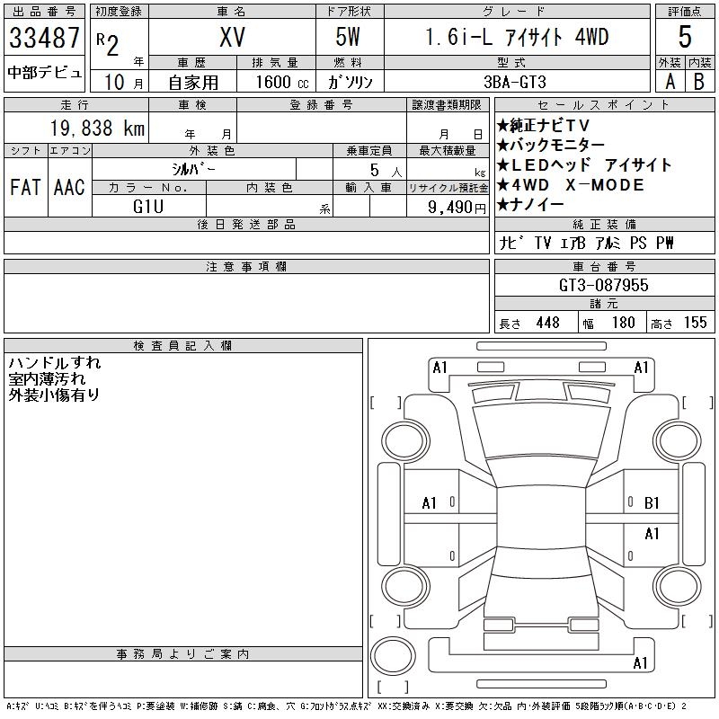 SUBARU XV 1.6I-L EYESIGHT 4WD - лот 33487