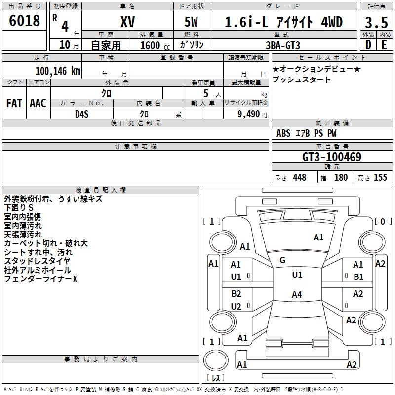 SUBARU XV 1.6I-L EYESIGHT 4WD - лот 6018
