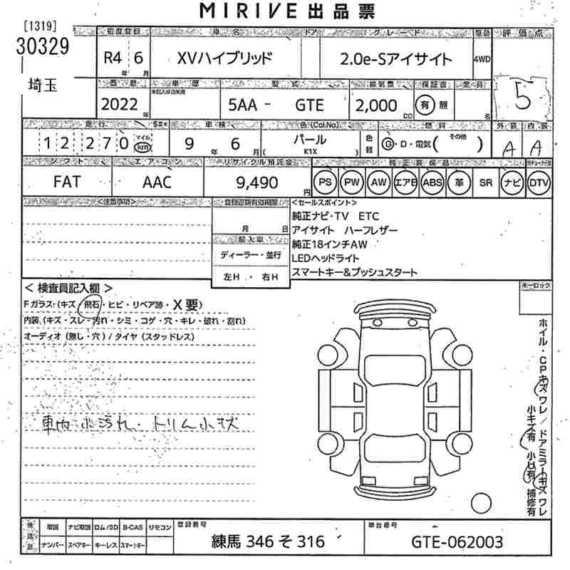 SUBARU XV - лот 30329