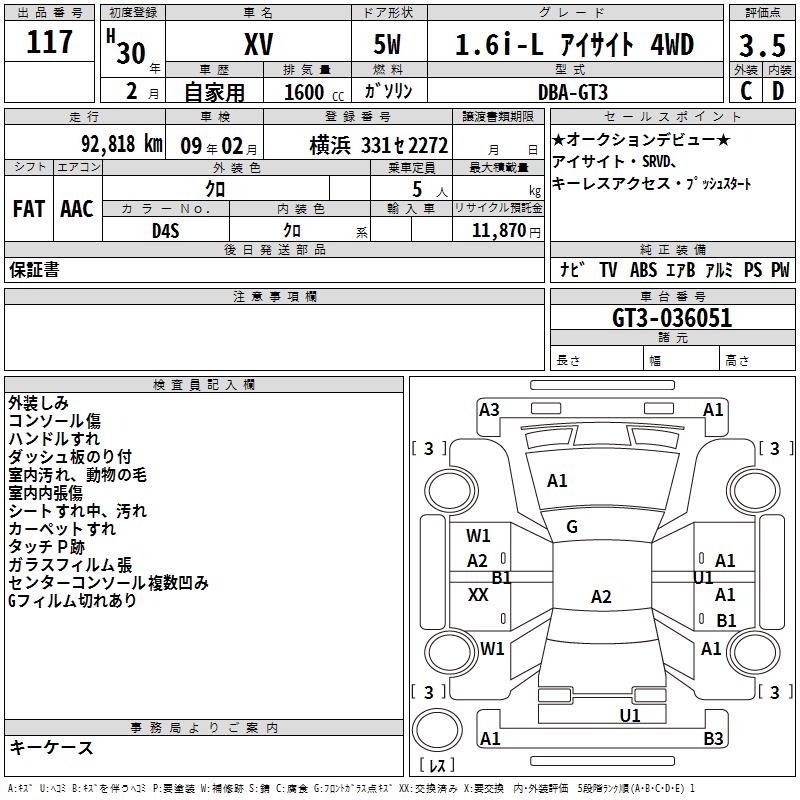 SUBARU XV 1.6I-L EYESIGHT 4WD - лот 117