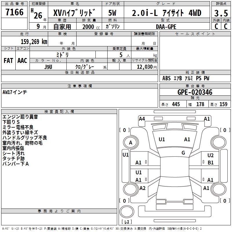 SUBARU XV 2.0I-L EYESIGHT 4WD - лот 7166