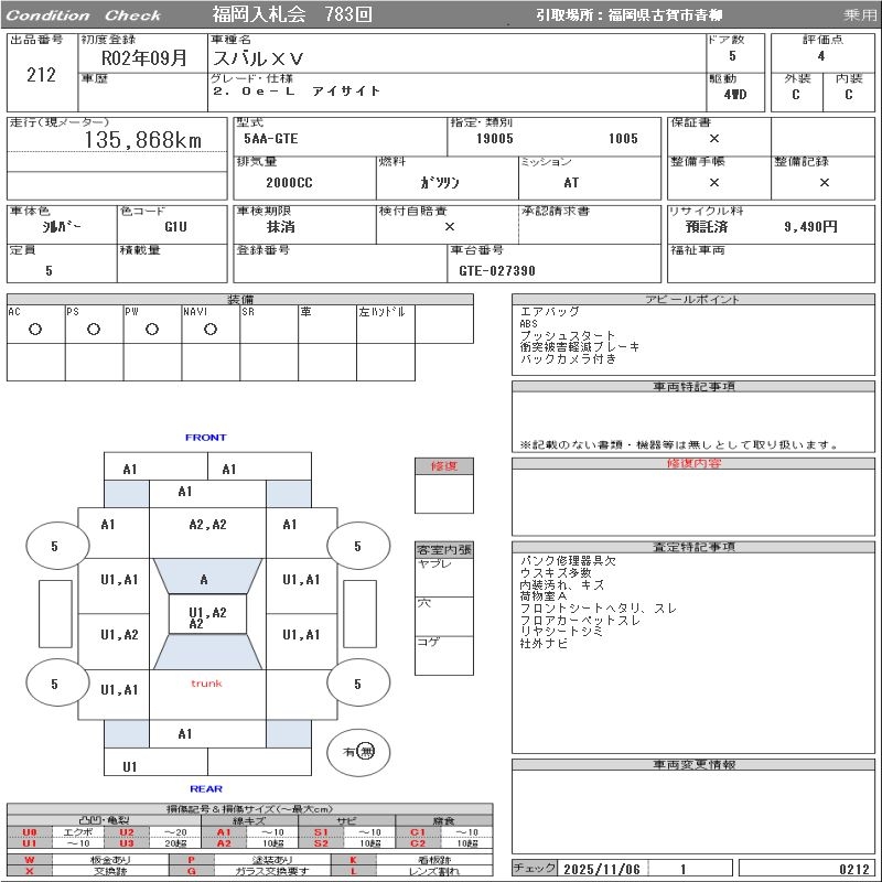 Все аукционы SUBARU XV