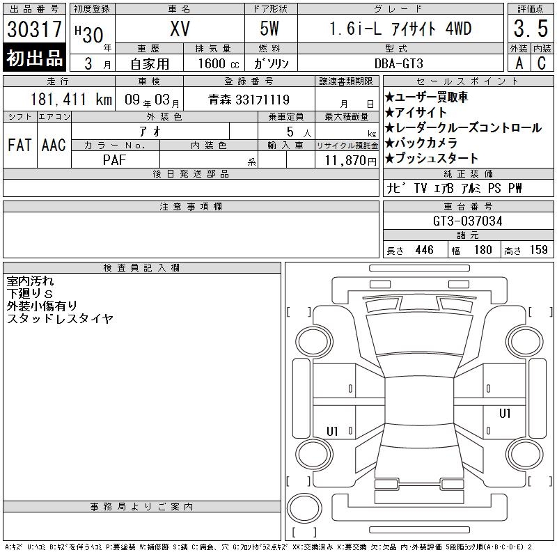 SUBARU XV 1.6I-L EYESIGHT 4WD - лот 30317