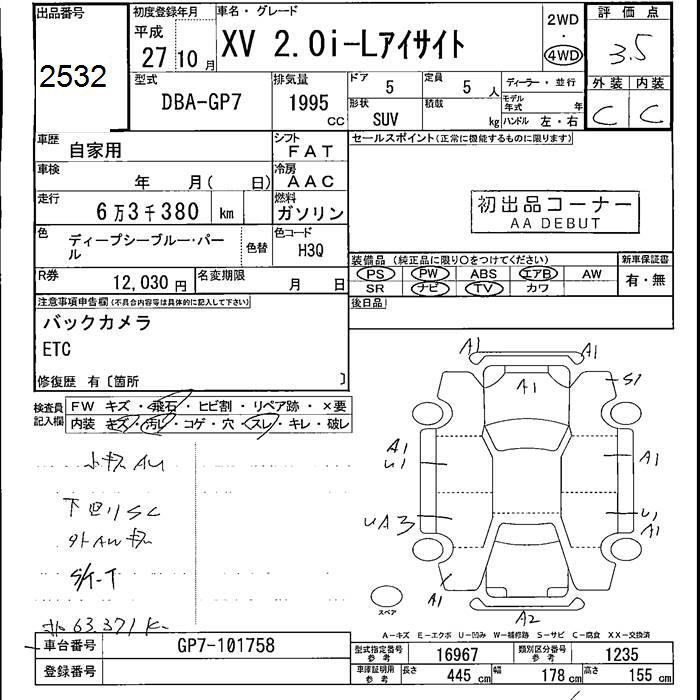 SUBARU XV - лот 2532