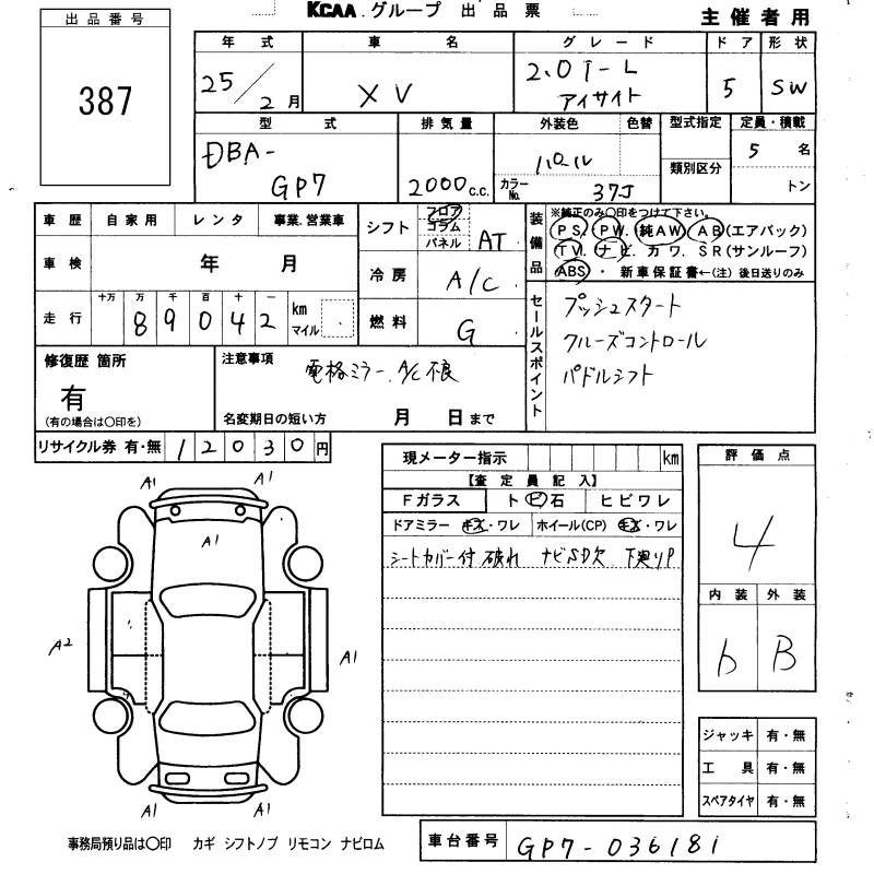 SUBARU XV - лот 387