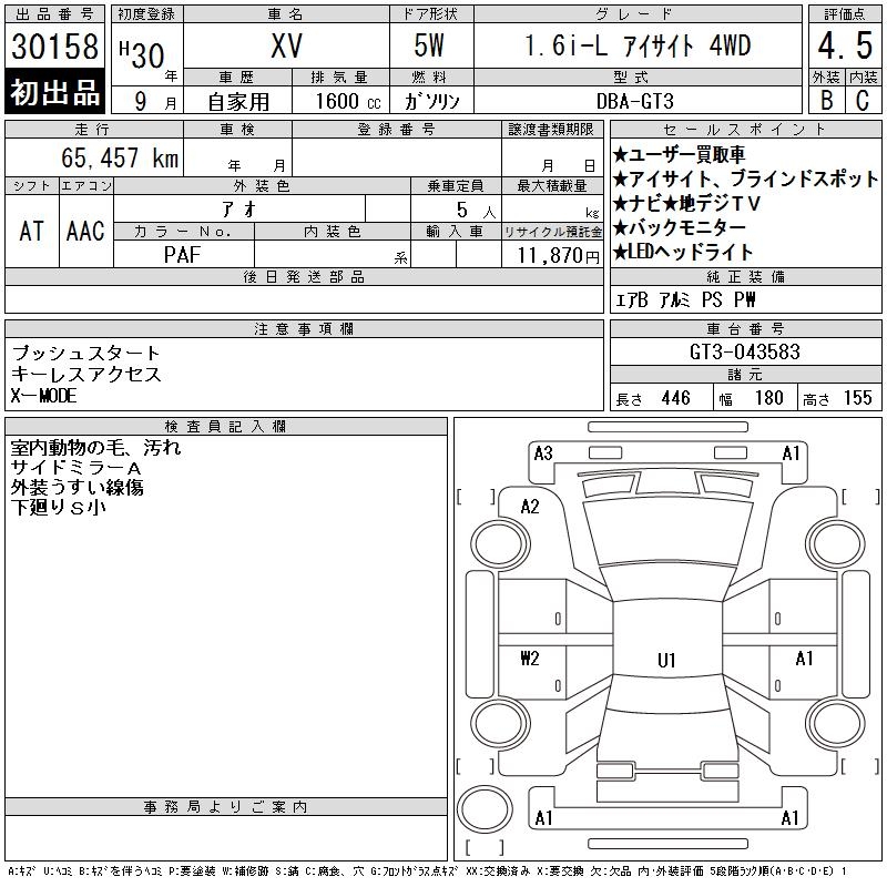 SUBARU XV - лот 30158