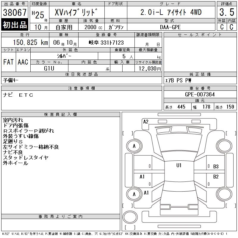 SUBARU XV - лот 38067
