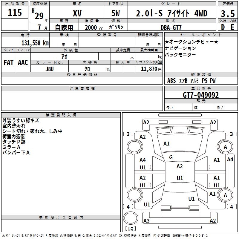 SUBARU XV - лот 115
