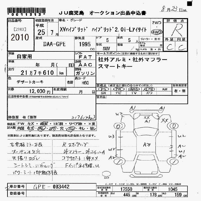 SUBARU XV - лот 2010