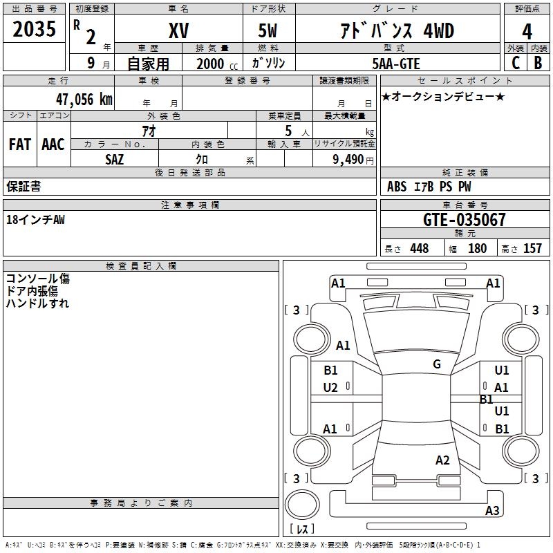 SUBARU XV - лот 2035