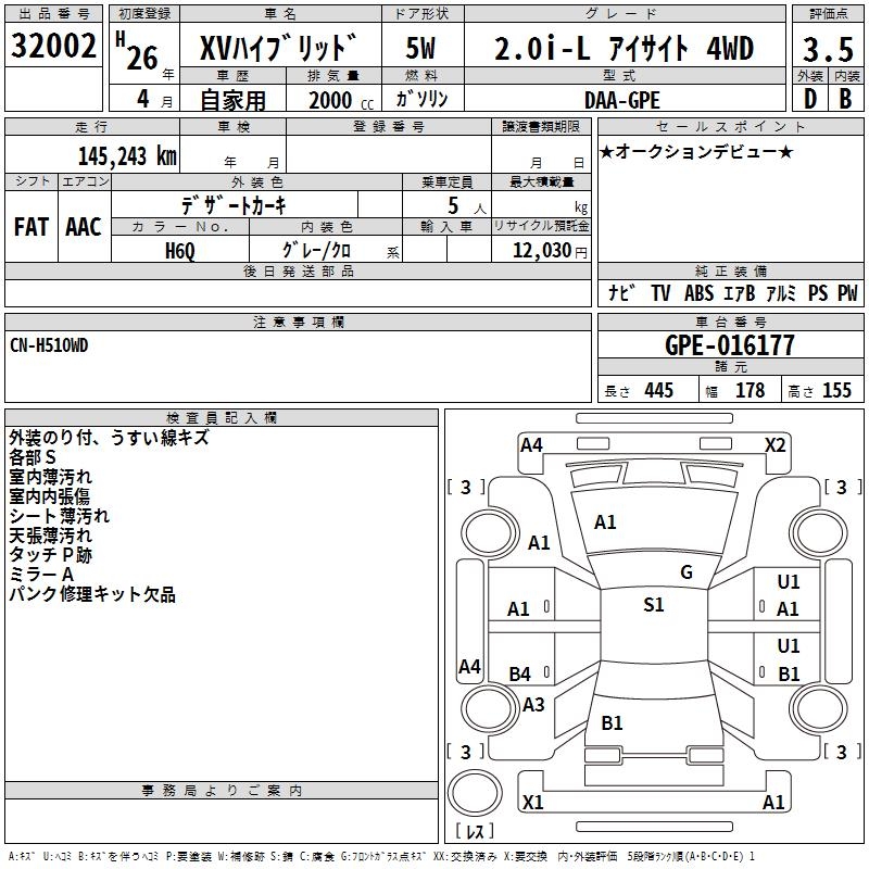 SUBARU XV - лот 32002