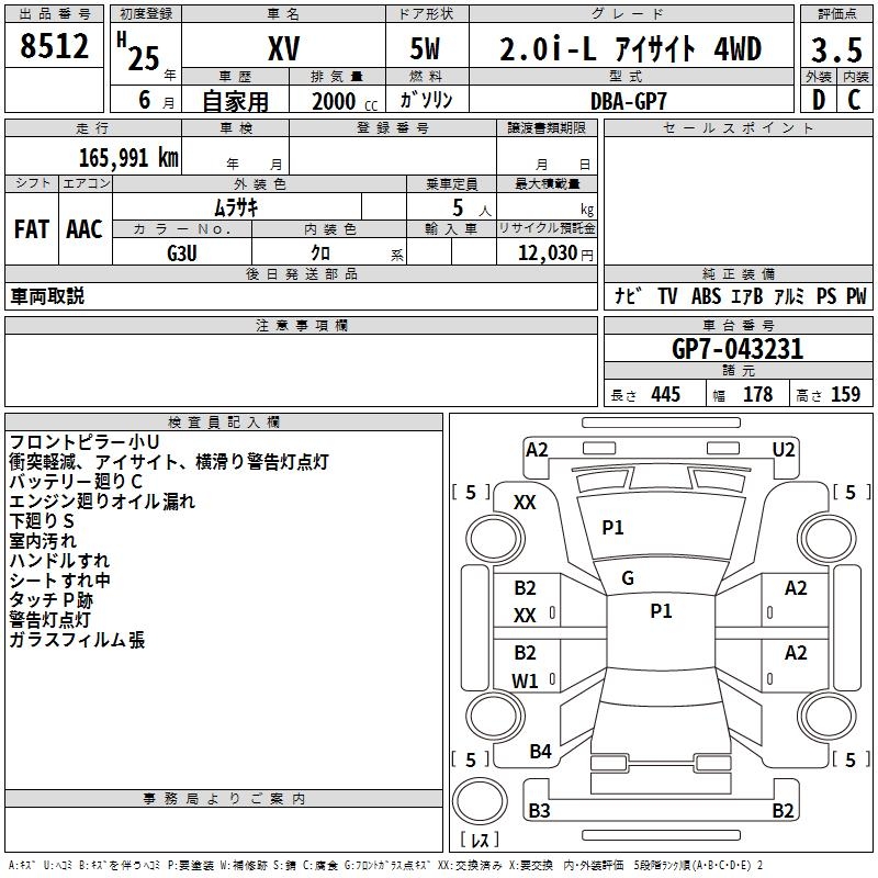 SUBARU XV - лот 8512