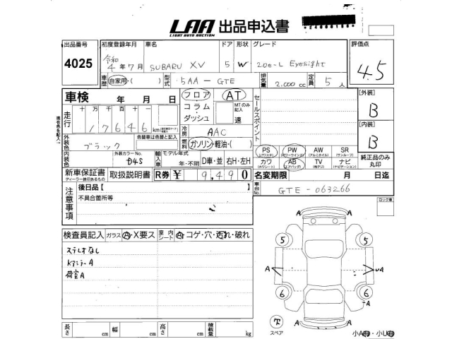 SUBARU XV - лот 4025