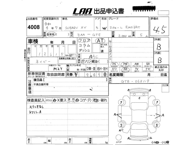 SUBARU XV - лот 4008