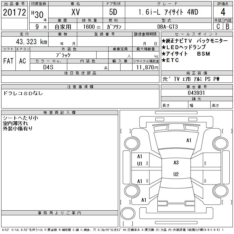 SUBARU XV - лот 20172