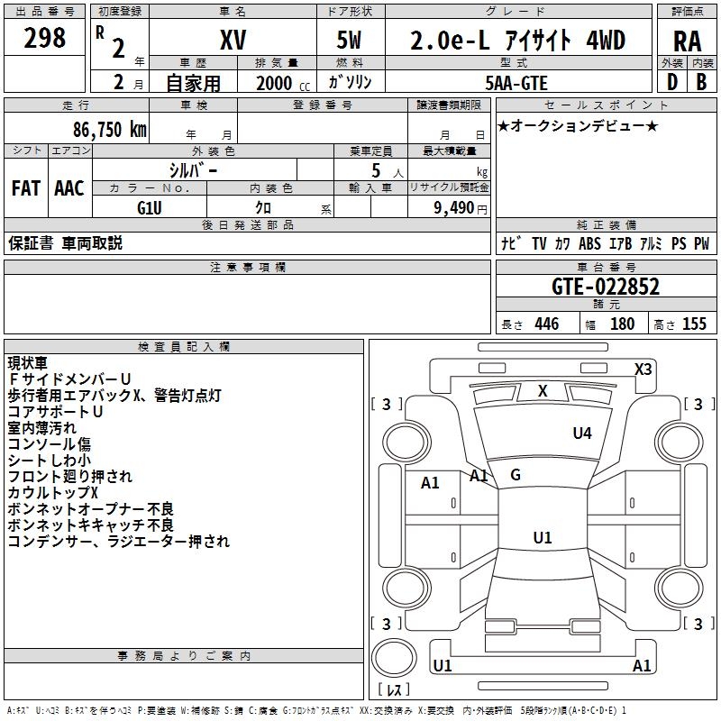 SUBARU XV - лот 298