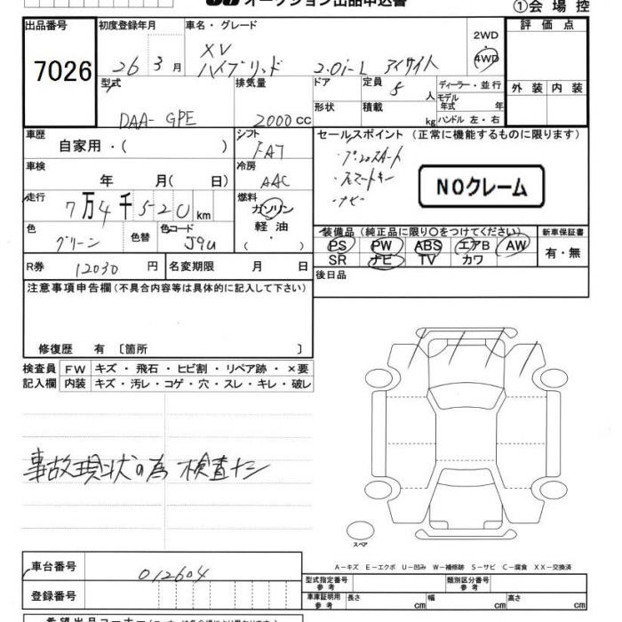 SUBARU XV - лот 7026