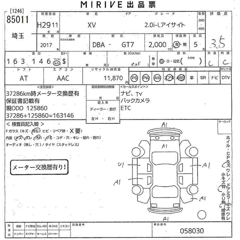 SUBARU XV - лот 85011