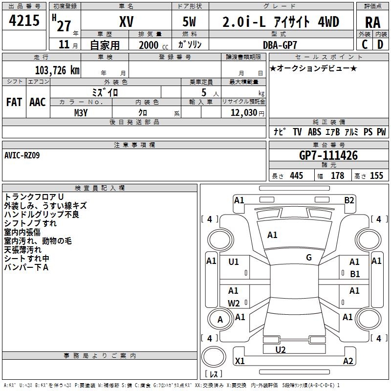 SUBARU XV - лот 4215