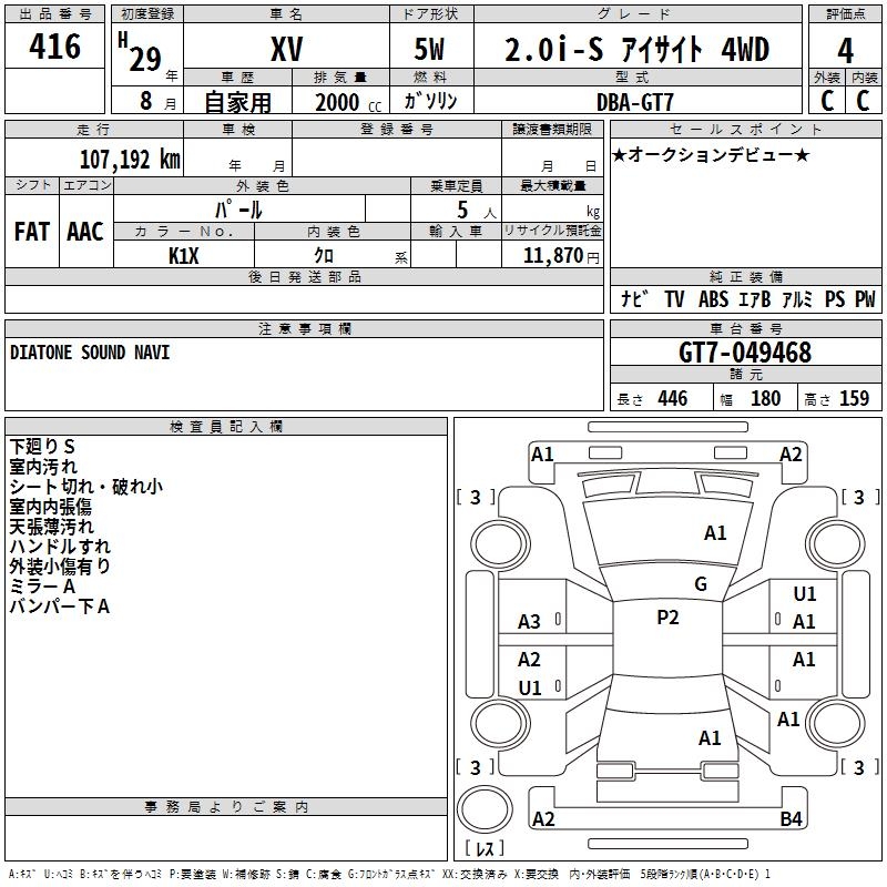SUBARU XV - лот 416
