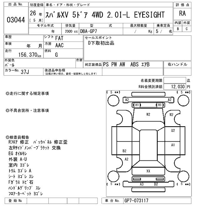SUBARU XV - лот 3044