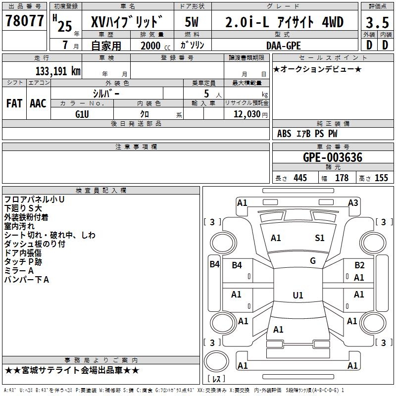 SUBARU XV - лот 78077