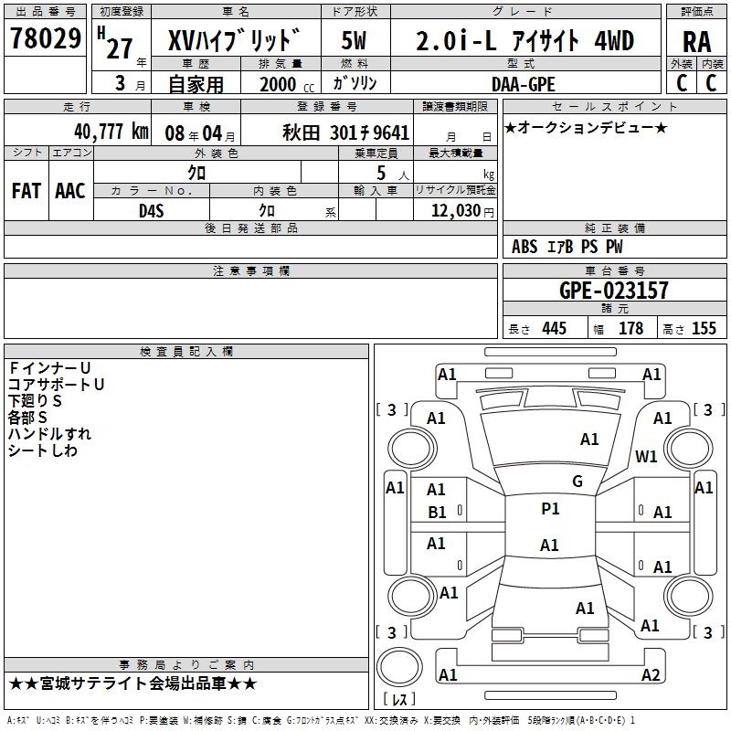 SUBARU XV - лот 78029
