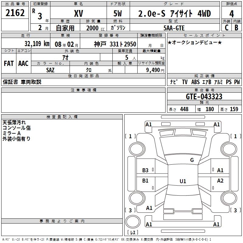 SUBARU XV - лот 2162