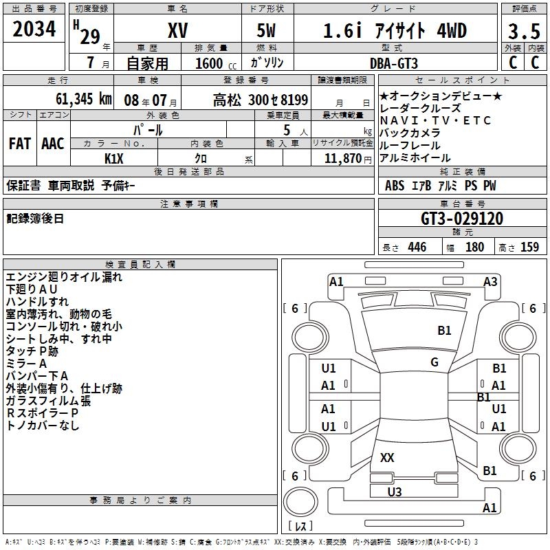 SUBARU XV - лот 2034