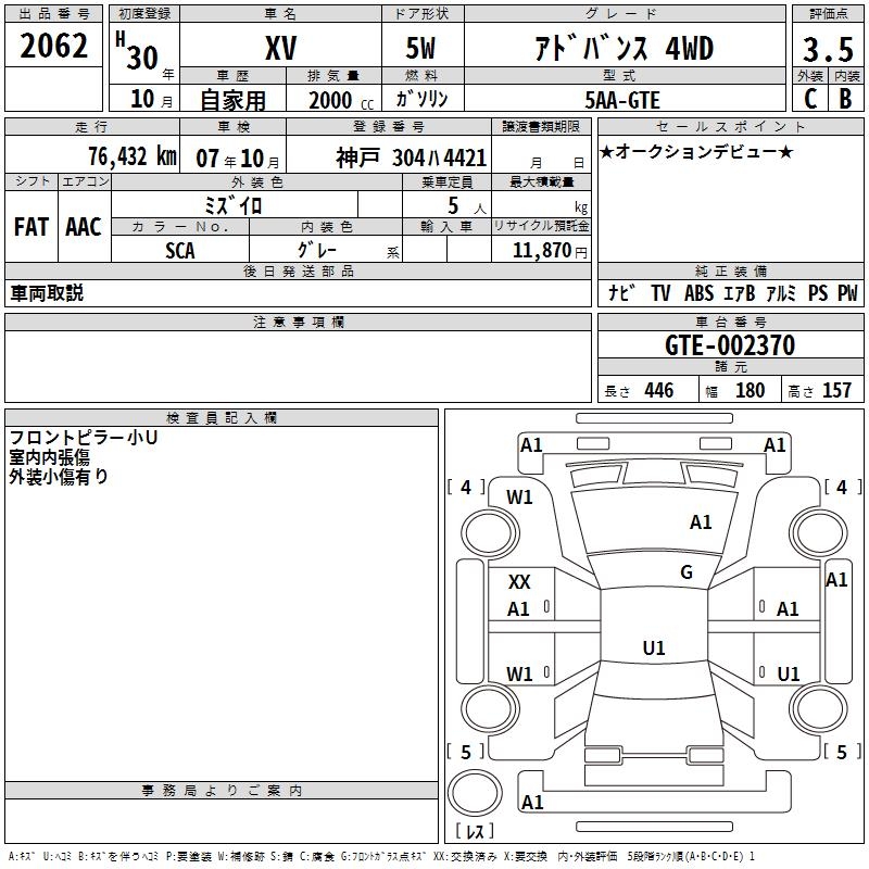 SUBARU XV - лот 2062