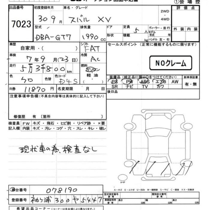 SUBARU XV - лот 7023