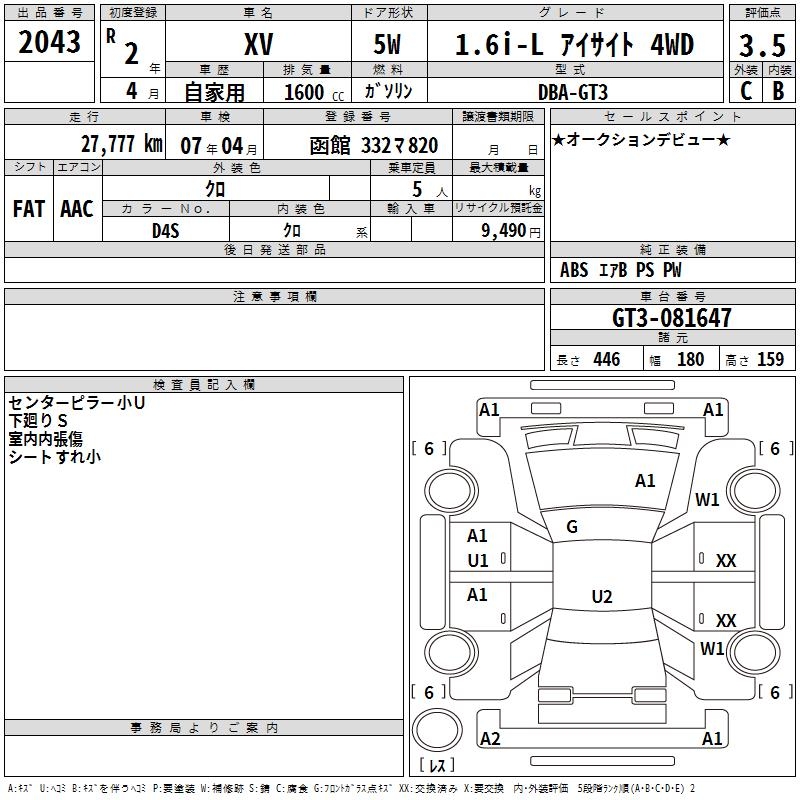 SUBARU XV - лот 2043