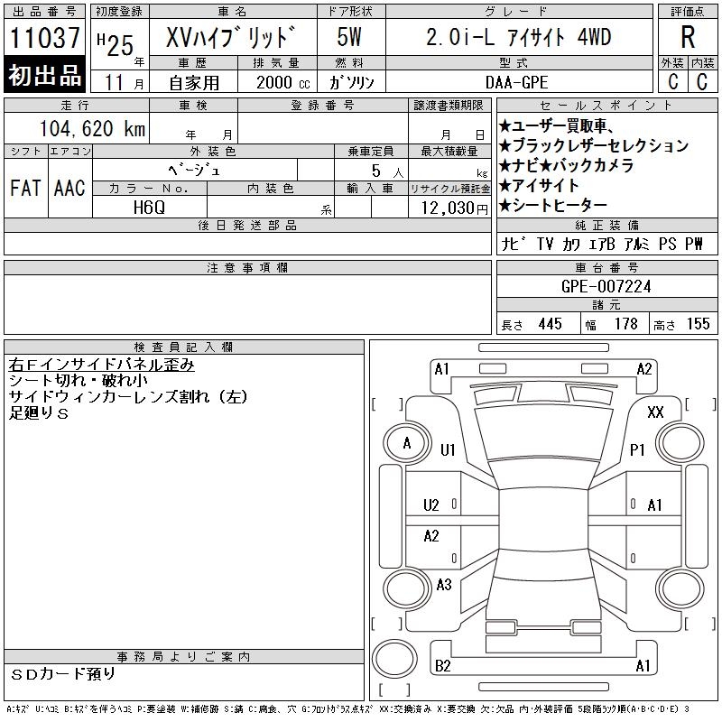 SUBARU XV - лот 11037