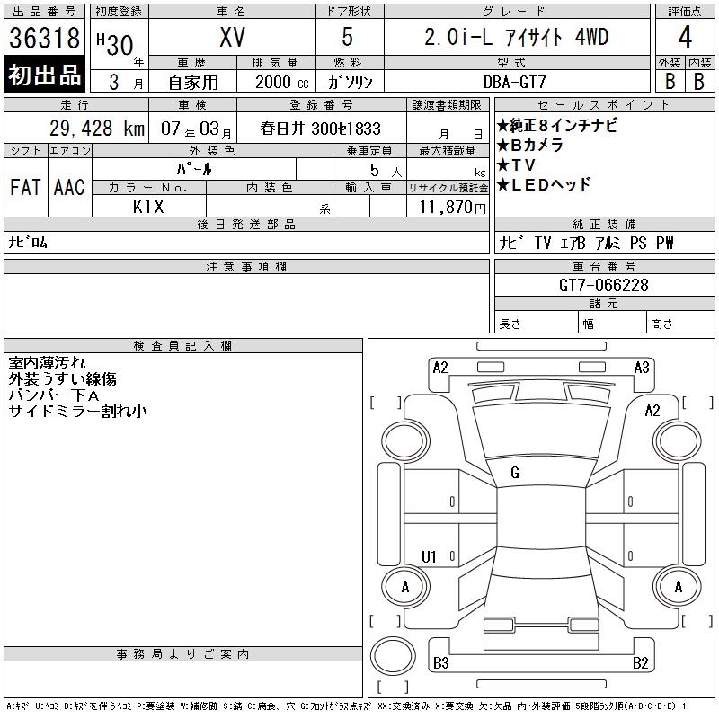 SUBARU XV - лот 36318
