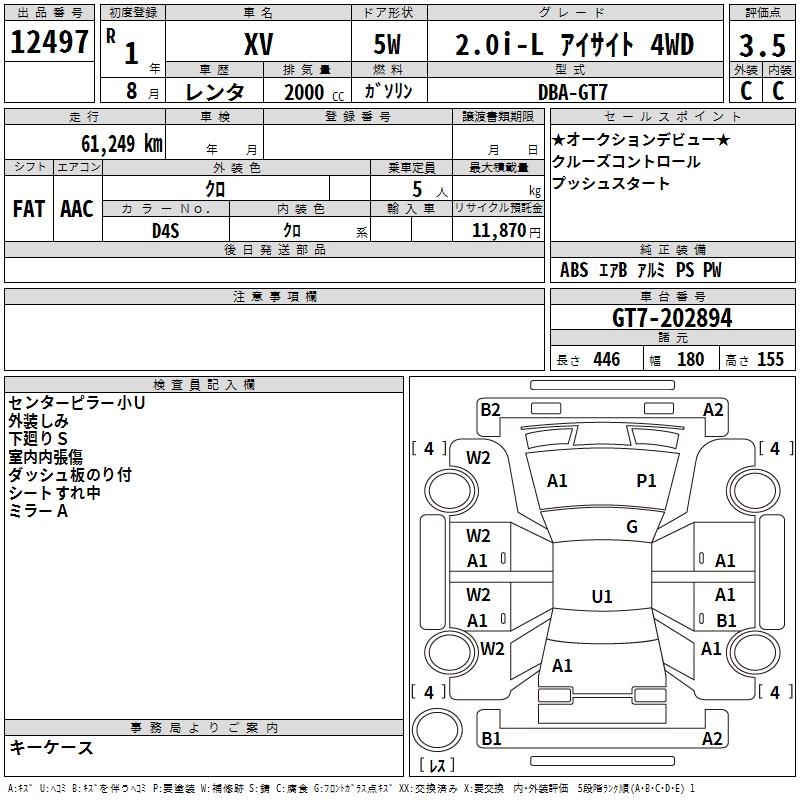 SUBARU XV - лот 12497