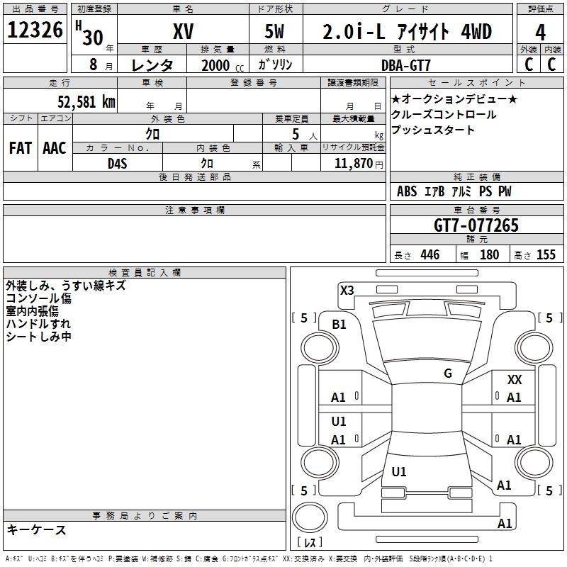 SUBARU XV - лот 12326