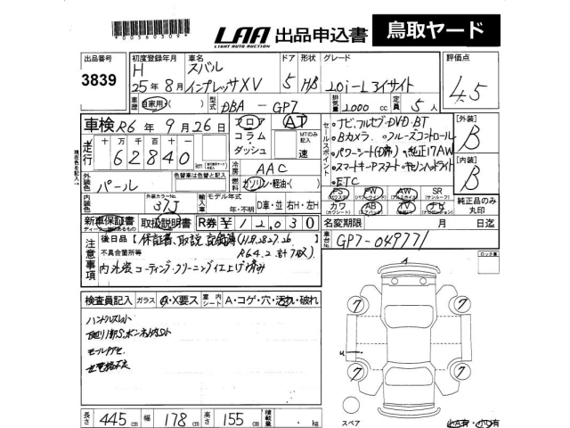 SUBARU XV - лот 3839
