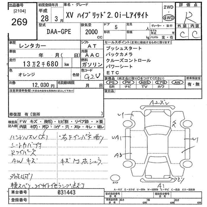 SUBARU XV - лот 269