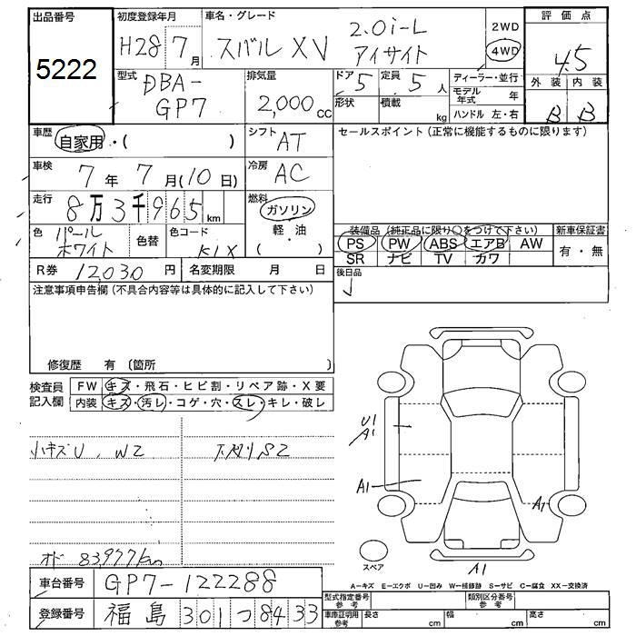 SUBARU XV - лот 5222
