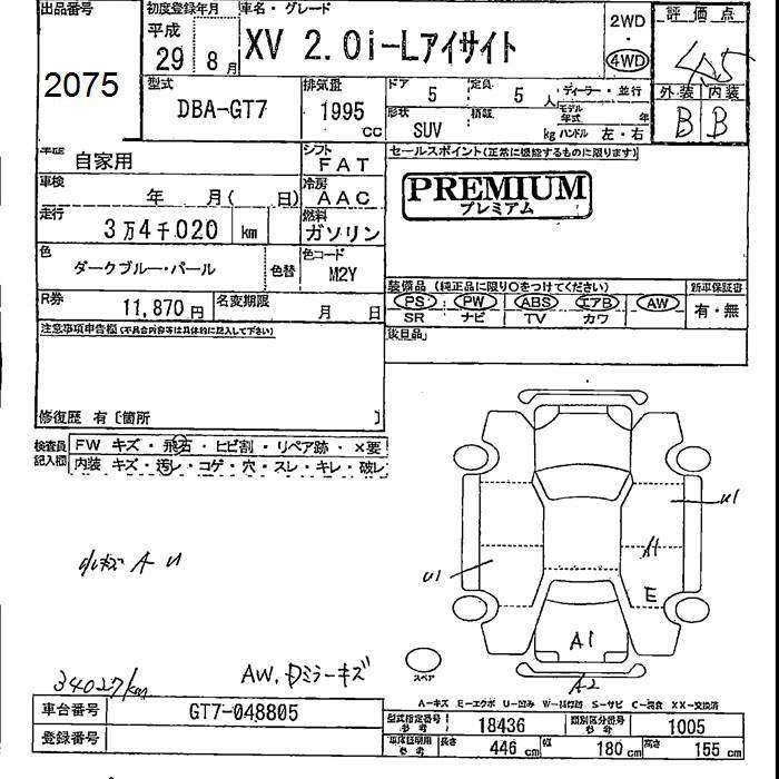 SUBARU XV - лот 2075
